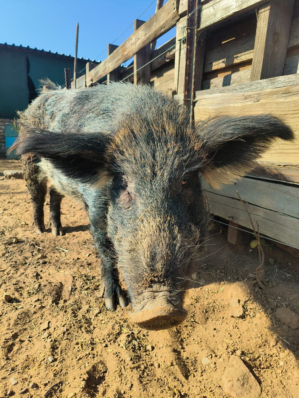When we first realised we were a pig rescue back in 2011 with only 50 pigs – and more on the horizon – we lived in a Conservancy. A wild boar discovered we had a delicious harem all for the taking and crashed through the electric fencing to get to them. All our males were sterilised, but most of our females were not due to the reluctance of vets at the time to perform the procedure. We finally managed to find a new place but only after he had given us 20/30 of the most gorgeous piglets.