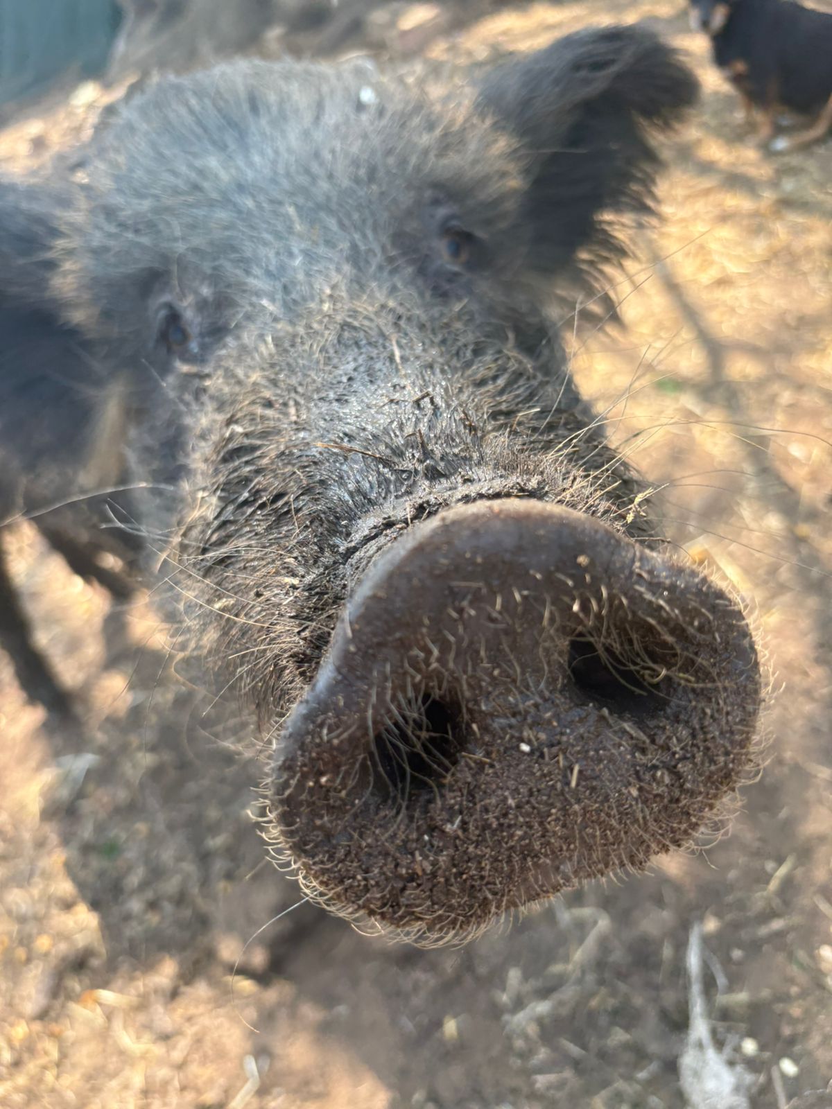 Popcorn was born in the Pigs ‘n Paws sanctuary. She is half pig and half wild boar. She is very inquisitive and loves to come up to you and press her snout against your legs. She’s got a very long beautiful snout with the cutest ears.